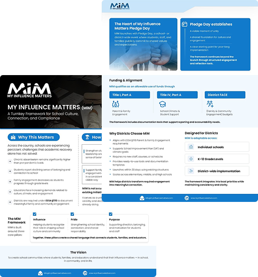 Districts may activate the system through moments such as the MiM Pledge, supported by guidance and materials aligned to the framework.